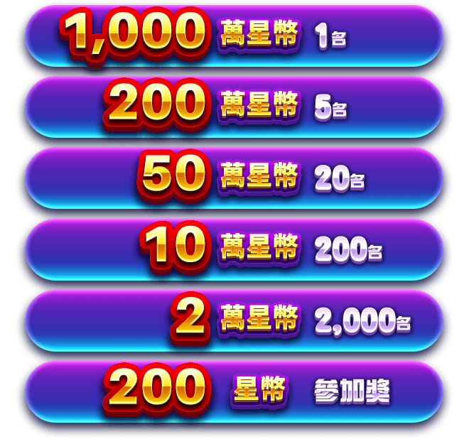 - 本活動如有未盡事宜,網銀國際股份有限公司擁有保留、修改、暫停及解釋活動內容之權利,修改訊息將於星城官網活動頁內公告,不另行通知。